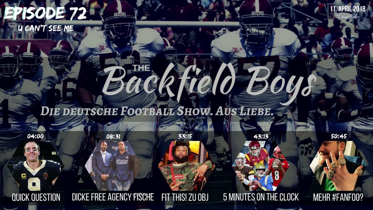 In der 72ten Backfield Boys Present angeln sich Pitch & TK die fettesten Fische der NFL Free Company, packen zum NFL Draft “5 minutes on the clock” und schauen sich für OBJ um. Sowie mehr Soccer #ausliebe.