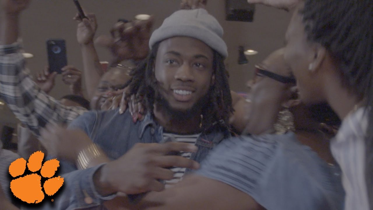 Mike Williams reacts to becoming the first pick of the new Los Angeles Chargers and the #7 overall pick in the 2017...