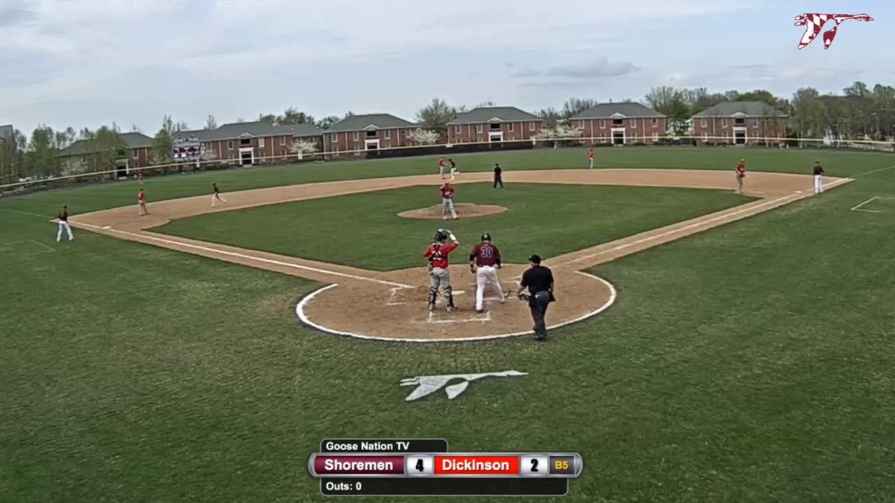 Charlie Meder homers in the bottom of the fifth of a 6-4 Washington College baseball win over Dickinson on 4/15/17.
