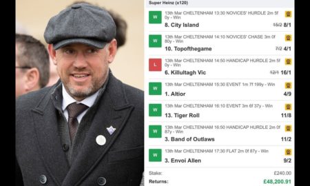 Golf star Lee Westwood wins £48ok on day two of Cheltenham with unbelievable Tremendous Heinz guess. GOLF star Lee Westwood received £48,000...
