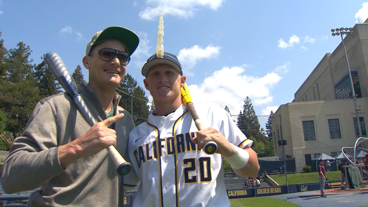 Pac-12 Network’s Eric Byrnes chats with freshman Andrew Vaughn about his solid start at Cal.