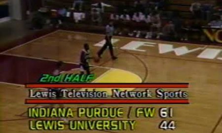 A part of the second half of an unknown males’s basketball sport at Lewis College.