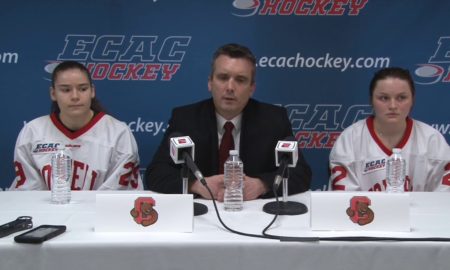 Cornell speaks with the media following Sunday afternoon’s Four-1 loss to Clarkson within the ECAC Hockey Championship sport.